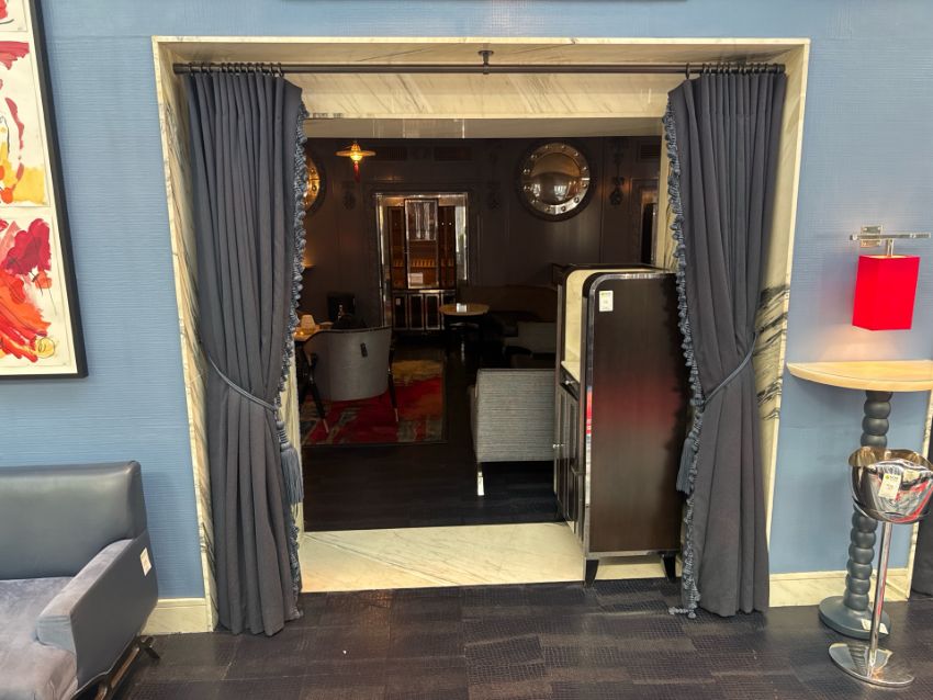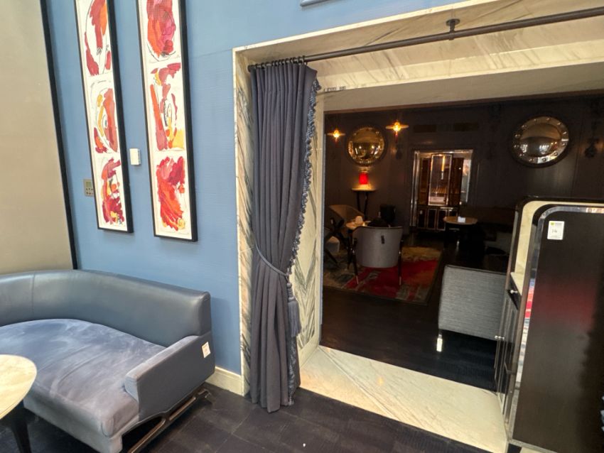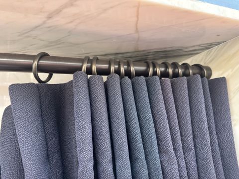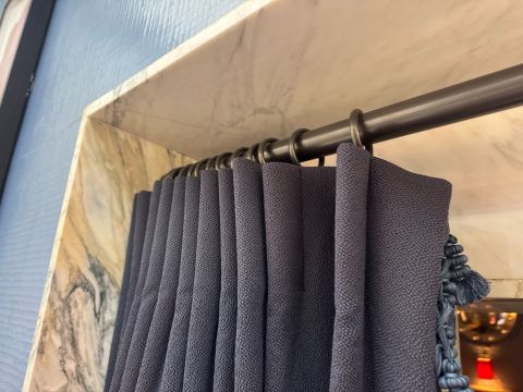 Custom Navy Doorway Curtain & Rail,Commissioned by Robert Angell Design for The Berkeley Blue Bar