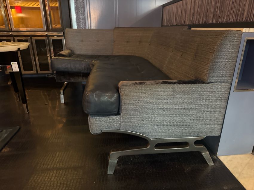 Iconic Navy Leather 3 Seat Corner Sofa, Commissioned by Robert Angell Designed for The Berkeley