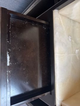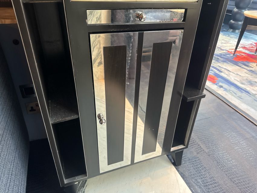 Wood and Marble unit with drawer, cupboards and chrome finishes