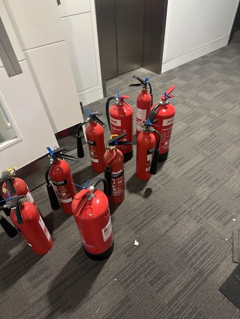 Please note you are bidding on 1 set of 1 x foam extinguisher, 1 x Co2 extinguisher and one double stand