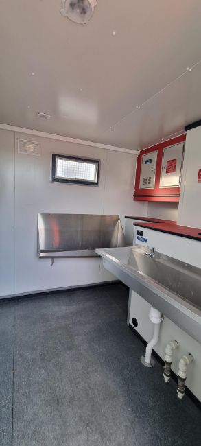 • 1 cubicle in the rear toilet room, with a sink and hot running water