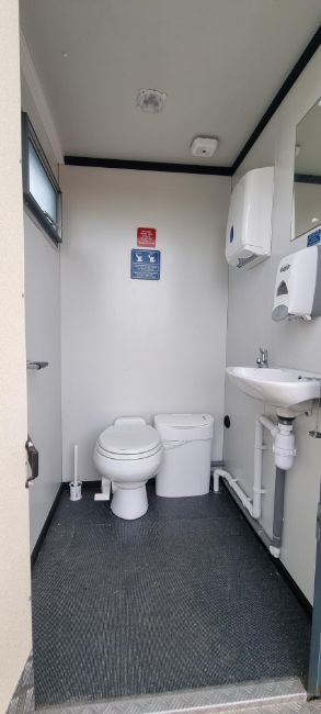 • Road towable 2+1 toilet unit with a fixed chassis enabling the unit to be set up at a site within 5 minutes of arrival