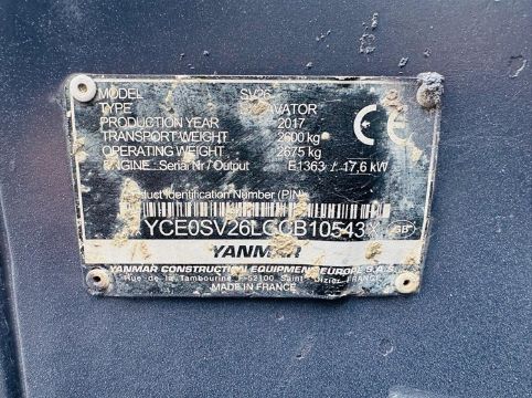 2017 Yanmar SV26 Excavator