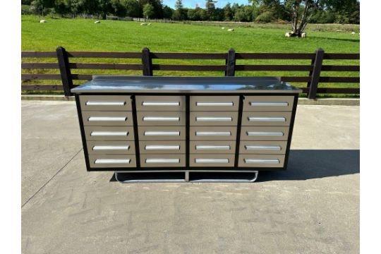 20 steel drawers with heavy-duty wheels for easy mobility