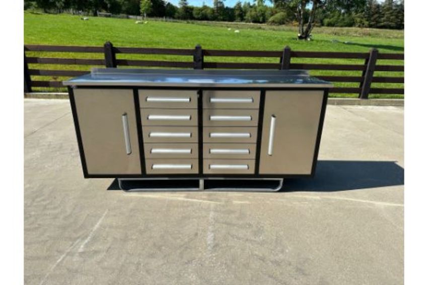 drawers with locks for storing miscellaneous work supplies