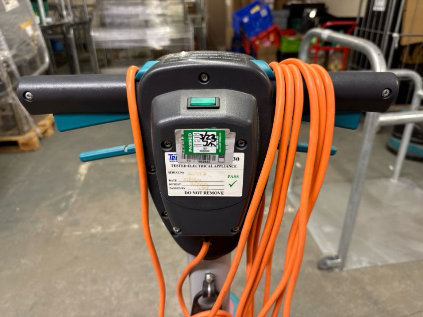 Untested Approximate Dimensions: Height - 121cm Width - 43cm Depth - 62cm Voltage AC (~) / Frequency V/Hz 220 - 240 / 50 - 60 Motor power - 1100w Pad / brush diameter - 43cm Pad / brush speed - 380rpm Pad / brush pressure - 22g/cm2 Productivity rate - 475m2/h Sound pressure level - 53dB(A) Weight - 32kg Cable length 15m Ref - 664 Location - 3rd Floor