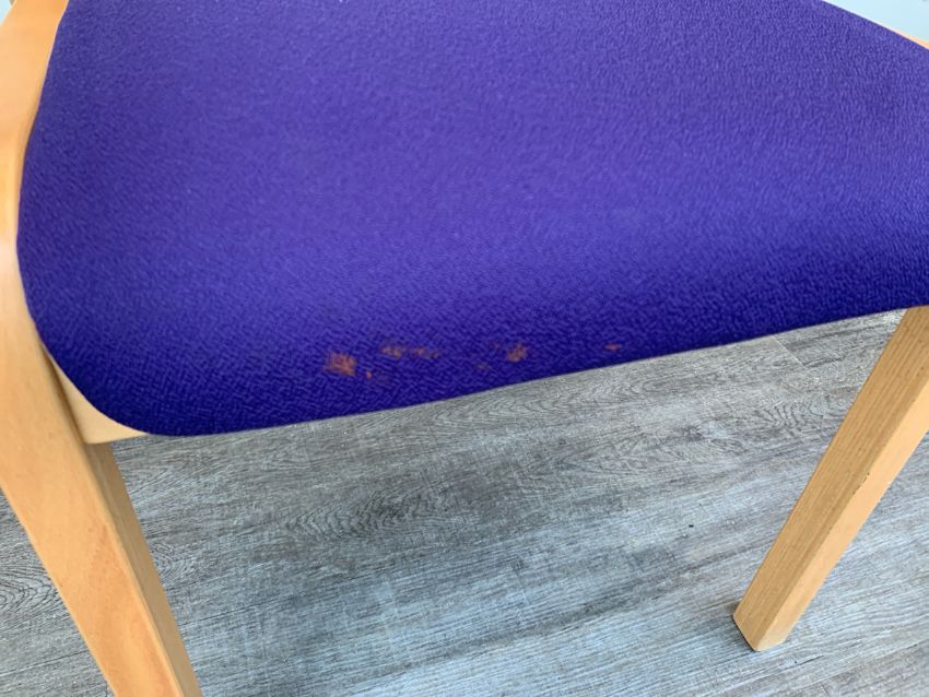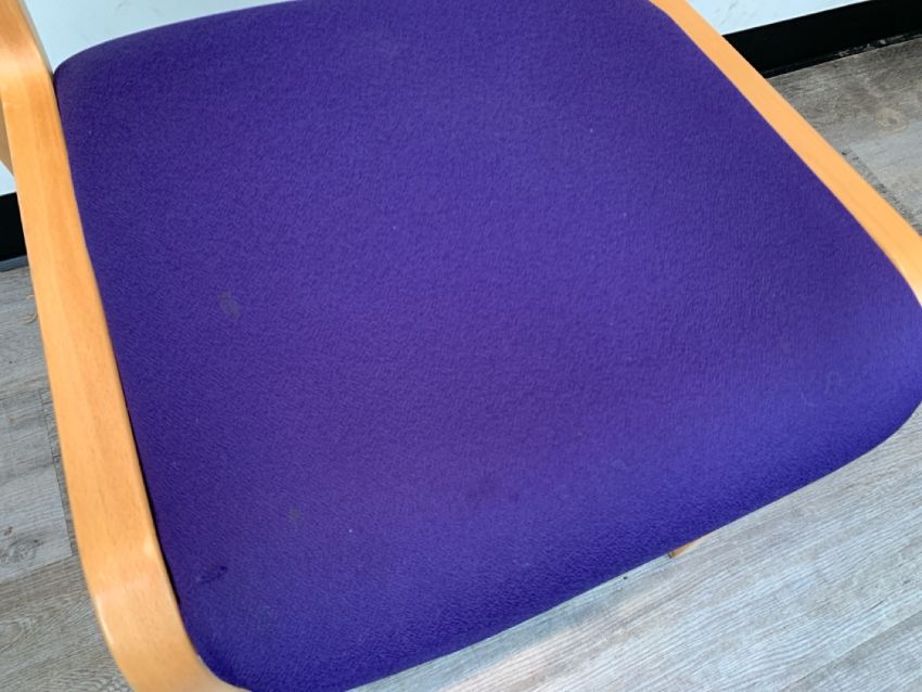 Set Of 3 Wooden Framed Purple Felt Chairs - No Reserve