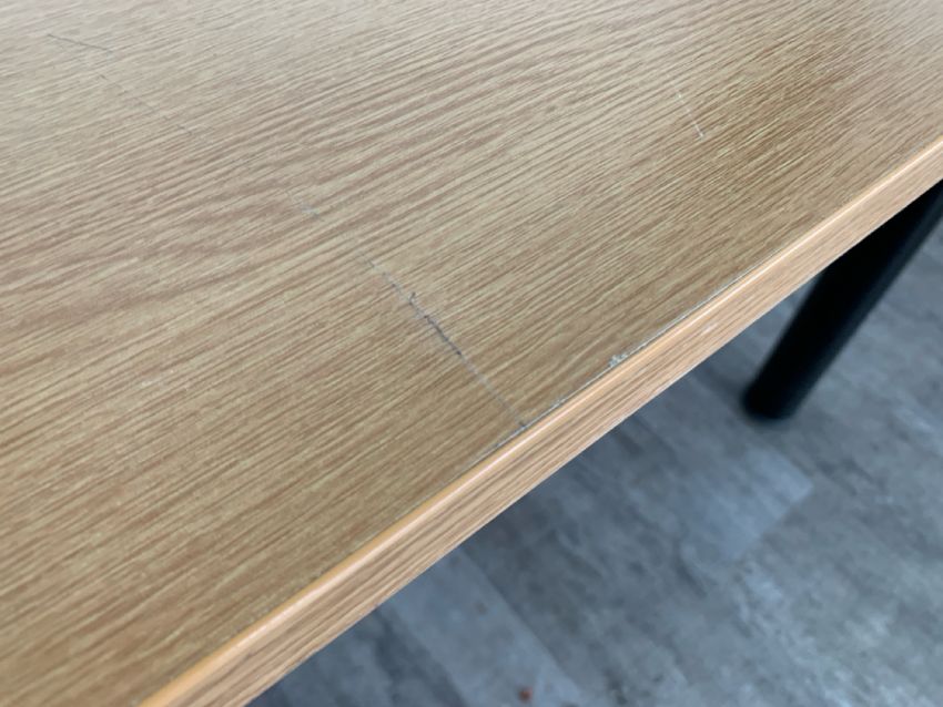 Straight Desk Black Metal Legs Wood Lacquer Top - No Reserve