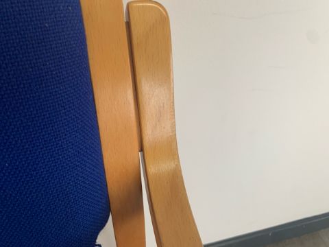 4 Wooden Frame Blue Fabric Chairs - No Reserve