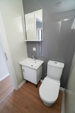 - Bathroom (includes a shower cabin, sink, and toilet)
