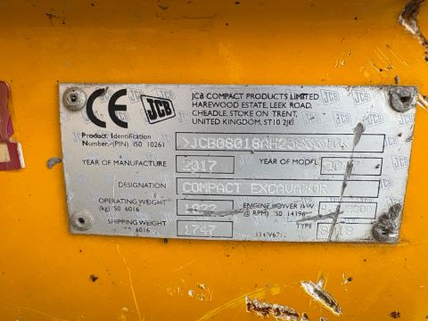 1.8 Tonne JCB 8018 Excavator (Full Cab) With Extending Tracks