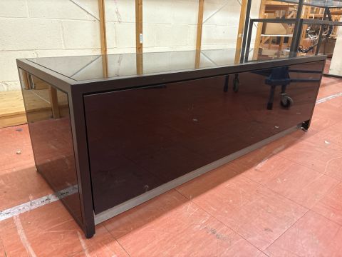 Black Metal Frame Tables With Glass Top And A Black Glass Drawer Unit