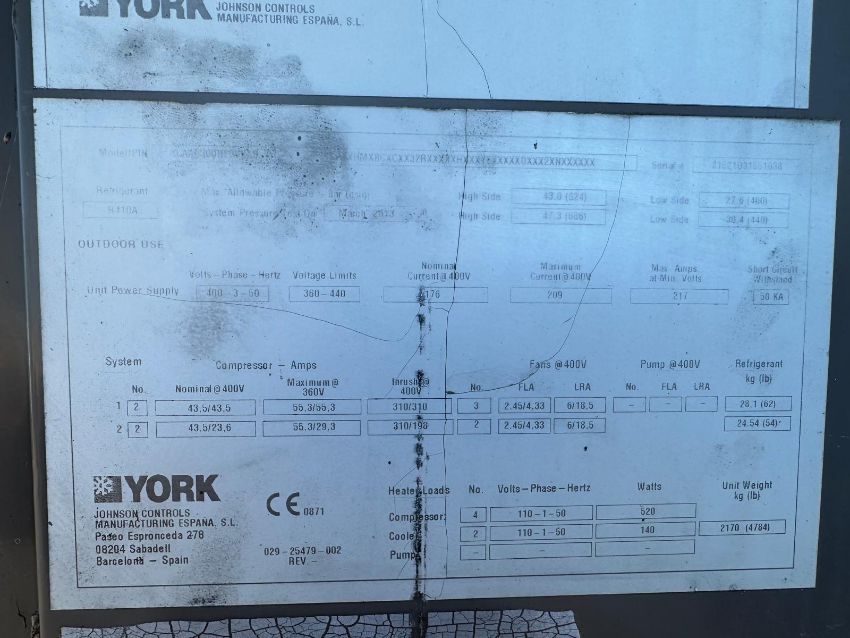kW cooling capacity 289 kW