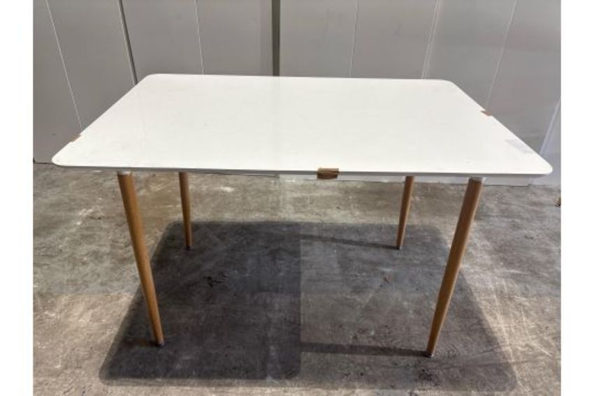 1 White Gloss Top Wooden Oak Leg Tables