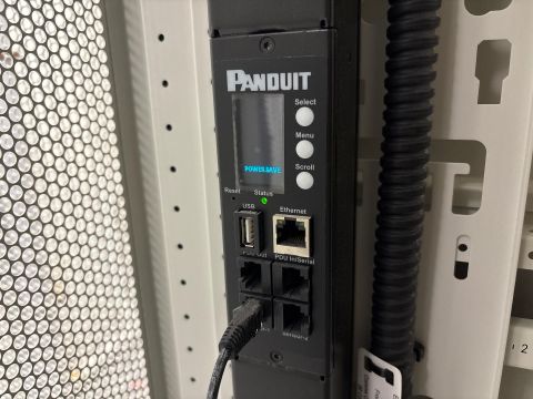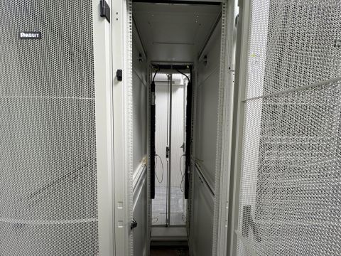 Panduit Server Rack DNE6822W Equipped with Panduit power leads on both sides A 48U, freestanding, enclosed server cabinet designed for data centre and server applications Approximate Dimensions: Height - 230cm Width - 58cm Depth - 127cm Ref - 56 Location - Ground floor