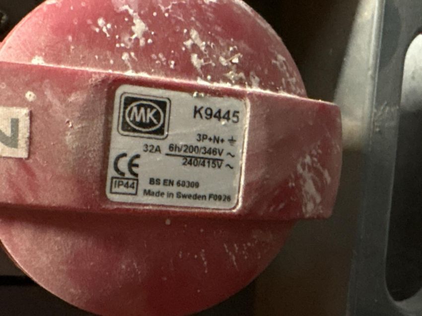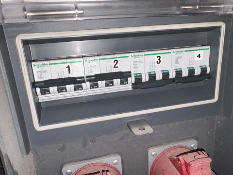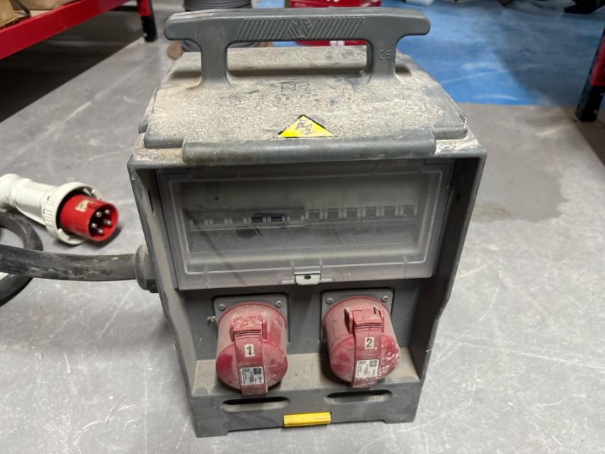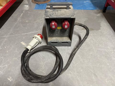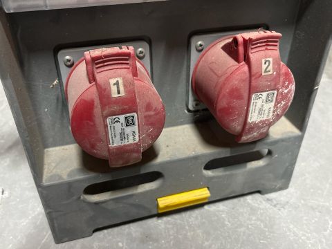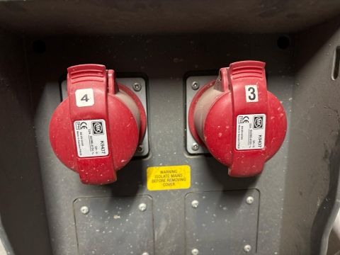 Temporary mains distribution assembly designed for 32A 5-pin, 400V sockets.