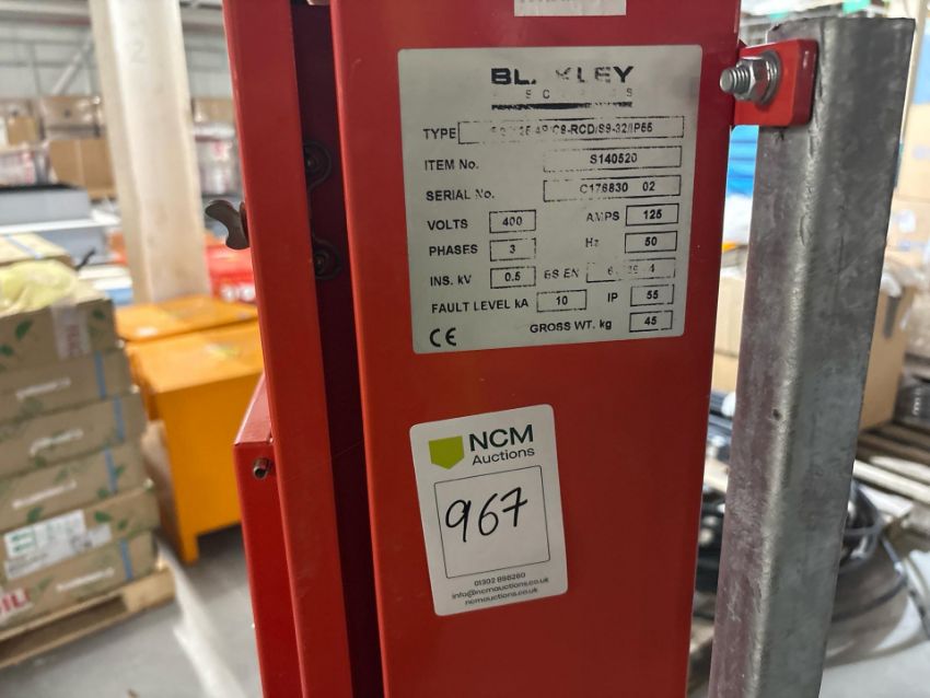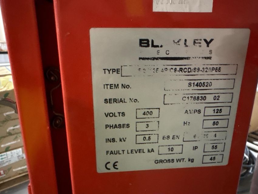 Blakley Power Distribution Box Item no - S140520 Serial - C176830 02 400V 125A 50Hz 3 Phase Approximate Dimensions: Height - 130cm Width - 70cm Depth - 30cm Ref - 967 Location - Ground floor