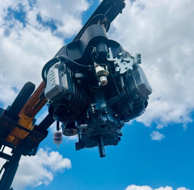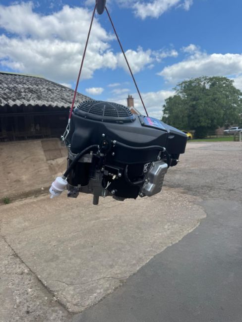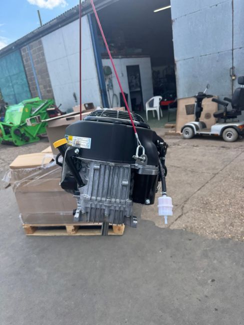 603cc, V-Twin, 15.1hp, vertical shaft, 4 stroke, OHV, air cooled, crank shaft size 1” – length 80mm, electric start,