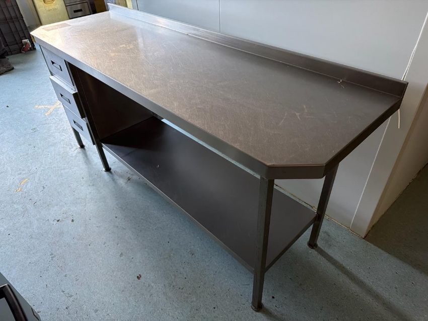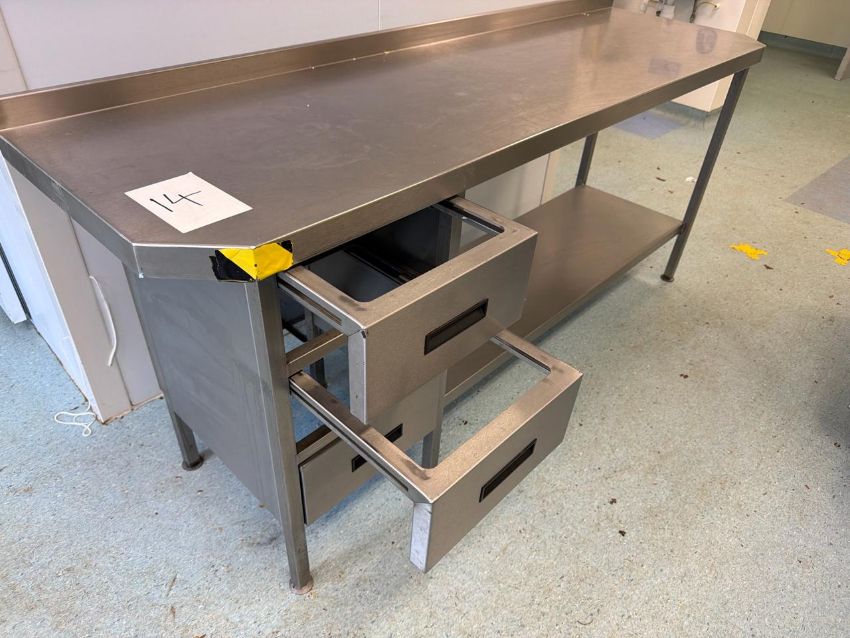 Stainless steel wall bench with drawers and undershelf - No Reserve