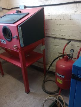 Clarke Sand Blaster Cabinet and Compressor The compressor new is approx £250, the cabinet new is approx £450. The cabinet has only been used twice on two projects, so is relatively new, and in excellent condition. It has been cleaned out. There is also the extractor unit and pipe work that is in working order, along with a new extractor fan in its original box that has not yet been used. There is a box of accessories, such as gloves, sieve, funnel and instruction manuals. Also the lubricator gadget that goes with the system. All the old and used grit/sand has been removed from the cabinet. There is a new tub of blast grit to go with the items. There is also spare New glass for the Cabinet, wrapped up for future use. Cabinet dismantled from the stand to be able to move it out the workshop, the cabinet has been wrapped in bubble wrap to protect and is stored safely. ref: 150825 location, Gedling, Nottinghamshire Collection - Please bring a hard copy of your collection note & ID to site. The collection note is proof of your payment. Please note it is the buyers responsibility to arrange for decommission (if needed), dismantling & removal of items from site. Once on site you will be required to sign in & then be guided to your lots. You will then be asked to remove the goods & loads your own goods as we cannot help to remove or load goods in anyway. Collection dates - Within 7 days of the auction ending. Payment - Strictly within 2 working days of the auction ending. We strongly advise to pay your invoice by BACS/Faster payment as we cannot release goods without a cleared payment. Paying by card on the payment link can take up to 3 days to clear. Contact - For any enquiries please do not hesitate to contact our team in the NCM office - 01302 898260 or email info@ncmauctions.co.uk