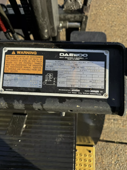 2003, DAEWOO - 1.5 Gas Forklift Truck (7,166 hours) 1.5 Tonne lift Good tyres all round 3.5m mast with side shift Good condition all round 7,166 hours Transport can be arranged Location - Yapton (BN18) Viewing - Strictly by appointment ONLY Collection - Please bring a hard copy of your collection note & ID to site. The collection note is proof of your payment. Please note it is the buyers responsibility to arrange for decommission (if needed), dismantling & removal of items from site. Once on site you will be required to sign in & then be guided to your lots. You will then be asked to remove the goods & loads your own goods as we cannot help to remove or load goods in anyway. Collection dates - Within 7 days of the auction ending. Payment - Strictly within 2 working days of the auction ending. We strongly advise to pay your invoice by BACS/Faster payment as we cannot release goods without a cleared payment. Paying by card on the payment link can take up to 3 days to clear. Contact - For any enquiries please do not hesitate to contact our team in the NCM office - 01302 898260 or email info@ncmauctions.co.uk