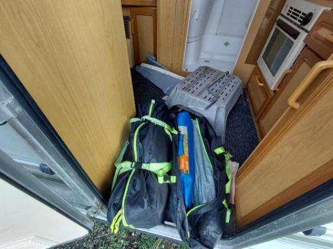 work comes with tool awning and wind breaker cassette toilet shower cooker fridge