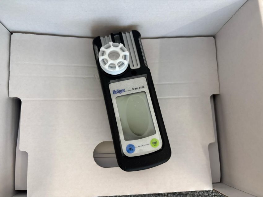 Drager X-am 5100 Single Gas Detector for personal air monitoring Detection of HF, HCl, H2O2 or hydrazine Includes charger Serial - APNM-0086 In box with instructions and manual Service due - 09/09/2022 Approximate Dimensions: Height - 13cm Width - 5cm Depth - 7cm Ref - 14 Location - Ground Floor