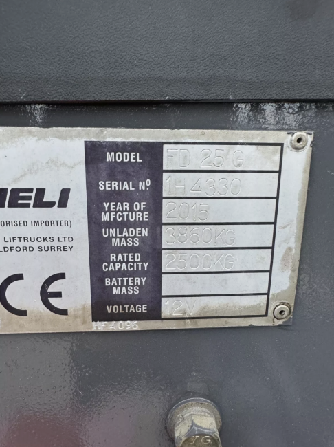 2015, HELI - 2.5 Tonne Diesel Forklift Truck (5,201 hours) Heli forklift truck. 2.5 Tonne lift Low hours - 5,201 Good tyres all round Well maintained 3.7m mast Good condition all round Transport can be arranged Location - Yapton (BN18) Viewing - Strictly by appointment ONLY Collection - Please bring a hard copy of your collection note & ID to site. The collection note is proof of your payment. Please note it is the buyers responsibility to arrange for decommission (if needed), dismantling & removal of items from site. Once on site you will be required to sign in & then be guided to your lots. You will then be asked to remove the goods & loads your own goods as we cannot help to remove or load goods in anyway. Collection dates - Within 7 days of the auction ending. Payment - Strictly within 2 working days of the auction ending. We strongly advise to pay your invoice by BACS/Faster payment as we cannot release goods without a cleared payment. Paying by card on the payment link can take up to 3 days to clear. Contact - For any enquiries please do not hesitate to contact our team in the NCM office - 01302 898260 or email info@ncmauctions.co.uk