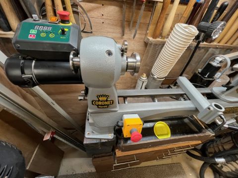 Record Power Coronet Herald Lathe No VAT around 2 years old very lightly used cost over £1100 includes: bench mountings outrigger remote magnetic off switch and bench extension Location: Paignton, Devon ref: 050825