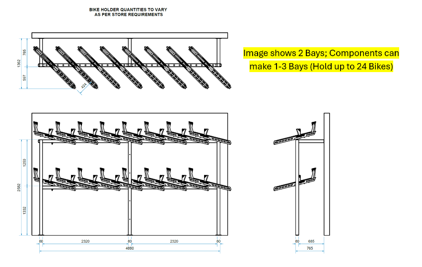3 Bay Tiered Bike Display - Holds up to 24 Bikes