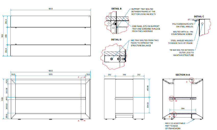 Approx. Dimensions: 1800 x 902 x 1060mm