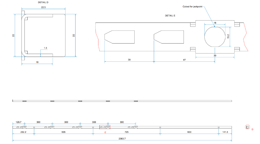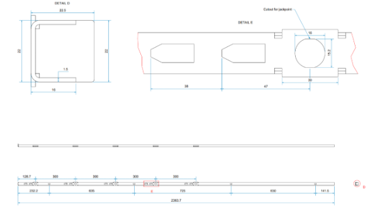 Approx. Dimensions: 3264 x 22.5 x 22mm