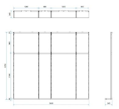 Approx. Dimensions: 1200 x 345 x 3250mm (Per Bay)