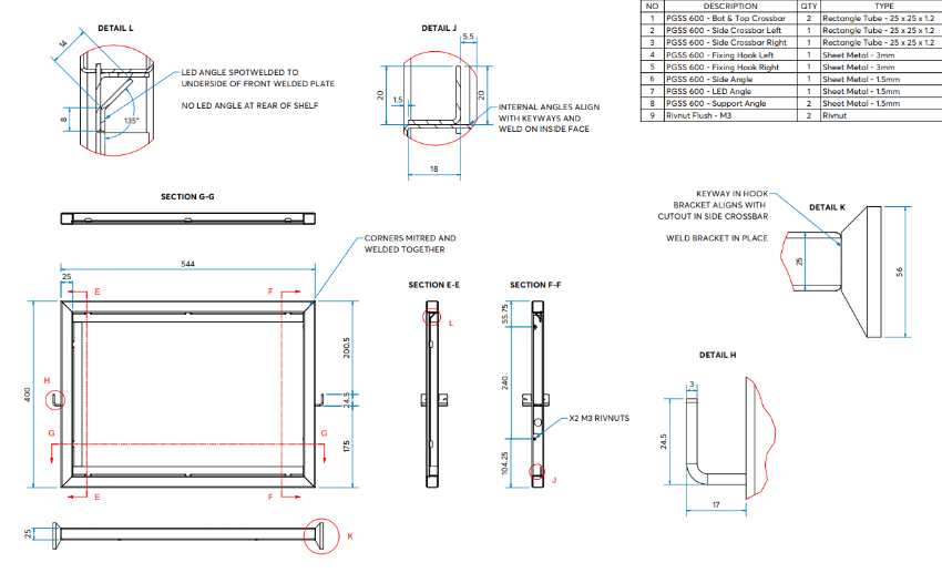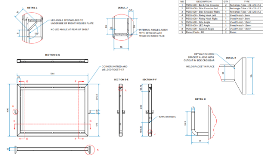 Approx. Dimensions: 400 x 544 x 25mm (Brkt 56mm long)
