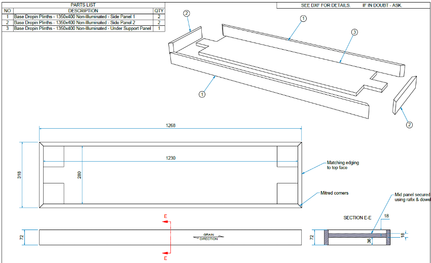Approx. Dimensions: 1268 x 318 x 72mm