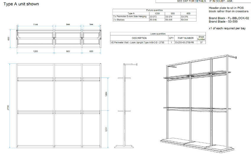 Approx. Dimensions: 1205 x 400 x 2730 (Per 1200 Bay)