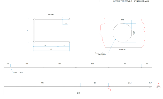 Approx. Dimensions: 25 x 37 x 2260mm