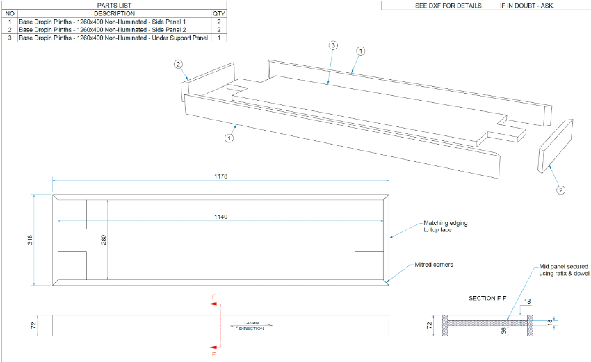 Approx. Dimensions: 1176 x 316 x 72mm