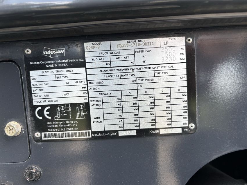 2018 Doosan 2.5 Tonne Forklift, 4.7m Container Spec Mast, Side Shift, 6751 Hours, Gas ref: 150925 Location: Arundel, West Sussex Delivery can be arranged at additional cost Collection - Please bring a hard copy of your collection note & ID to site. The collection note is proof of your payment. Please note it is the buyers responsibility to arrange for decommission (if needed), dismantling & removal of items from site. Once on site you will be required to sign in & then be guided to your lots. You will then be asked to remove the goods & loads your own goods as we cannot help to remove or load goods in anyway. Collection dates - Within 7 days of the auction ending. Payment - Strictly within 2 working days of the auction ending. We strongly advise to pay your invoice by BACS/Faster payment as we cannot release goods without a cleared payment. Paying by card on the payment link can take up to 3 days to clear.