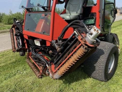 The Jacobsen LF3800 is a fairway mower designed for high-quality cutting and enhanced operator comfort. This lightweight fairway mower LF-3800, has been designed to accommodate a wide range of golf course terrain and grass conditions. They build them around a common platform, using common cutting units and components so that superintendents can ‘mix and match tractors and cutting units as needed. LF-3800 is designed for enhanced operator comfort, along with high-quality cutting. Power steering and tilt steering wheel are standard equipment, as is joystick reel positioning. Jacobsen’s patented FlashAttach reel-mount system permits easy changeover to vertical reels or other bladed reels. Reel-to-bedknife adjustments are made with a single wrench. Independent reel-motor relief valves increase cutting torque with lower hydraulic circuit pressures.