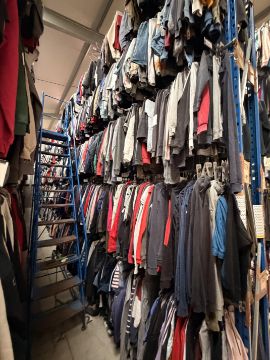 - Approximately 35 bays of custom garment racking designed specifically for hanging clothing.