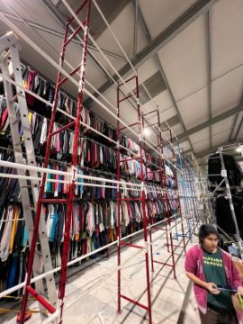 The overall system is designed for high-density garment storage and can comfortably hold around 70,000 items of clothing across the full structure.