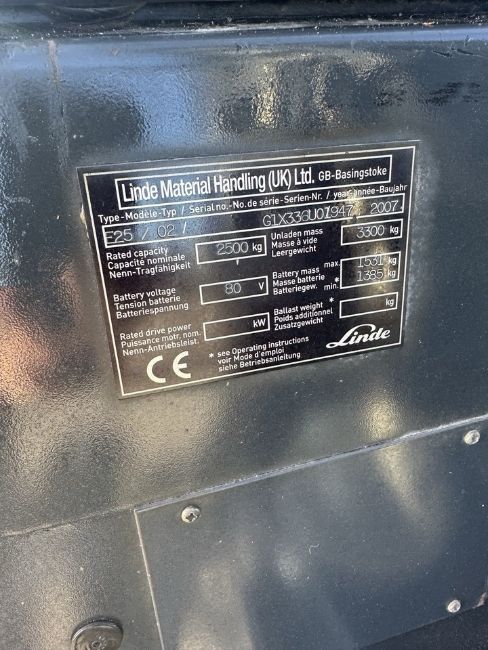 2007 Linde 2.5 Tonne Electric Forklift Truck