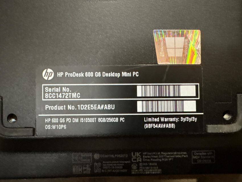 Model: HP ProDesk 600 G6 Desktop Mini PC