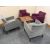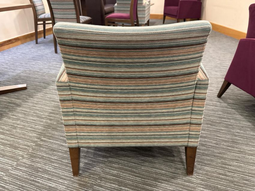 Made up of 2 x Patterned and 2 x Plum coloured fabric with dark wood legs