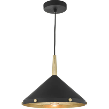 Edena 1 Light Matt Black Gold Leaf Pendant Light