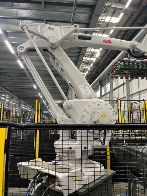 ABB IRB 660-180/3.15 industrial robot system, manufactured September 2022, complete with IRC5 controller. Designed for high-speed palletising and material handling applications, this model offers a 180kg payload and 3.15m reach.